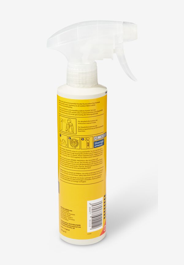 Macht deine Funktionsmaterialien wieder wasserabweisend: Unser APPAREL PROOFER-Imprägnierspray trägst du einfach mit der Sprühflasche auf deine synthetischen Kleidungsstücke auf. Es imprägniert das Gewebe, sodass Wasser wieder abperlt. Die PFC-freien Inhaltsstoffe und der Herstellungsprozess sind bluesign®-zertifiziert.