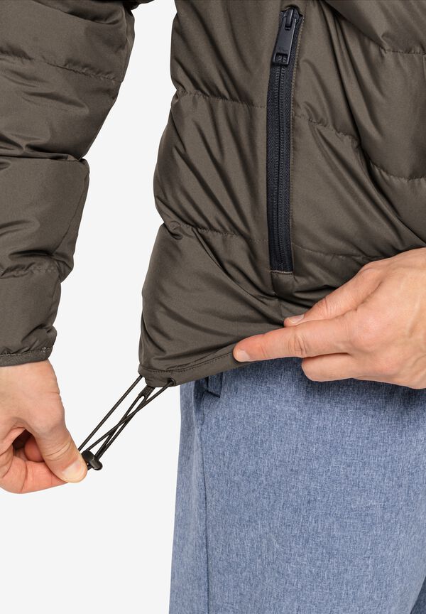 Die gesteppte COLONIUS Jacke bietet den idealen Schutz in der kalten Jahreszeit und hält durch ihre hochbauschige Füllung aus zertifizierten Daunen besonders warm. Das atmungsaktive TEXASHIELD Außenmaterial ist winddicht und wasserabweisend und garantiert ein angenehmes Tragegefühl. Für noch mehr Komfort sorgen die elastischen Ärmelbündchen, ein verstellbarer Saum, sowie die individuell anpassbare Kapuze, die bei Nichtgebrauch einfach abgenommen werden kann.