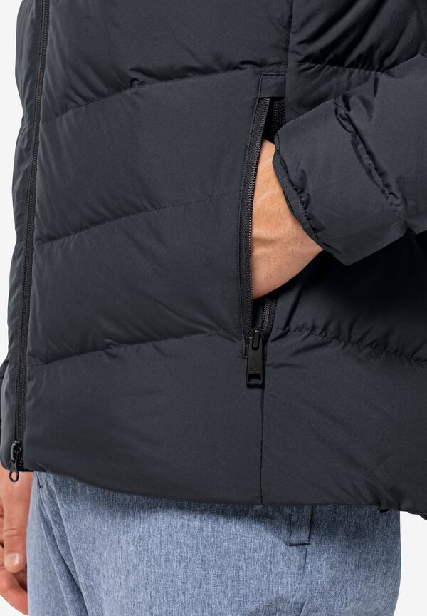 Die gesteppte COLONIUS Jacke bietet den idealen Schutz in der kalten Jahreszeit und hält durch ihre hochbauschige Füllung aus zertifizierten Daunen besonders warm. Das atmungsaktive TEXASHIELD Außenmaterial ist winddicht und wasserabweisend und garantiert ein angenehmes Tragegefühl. Für noch mehr Komfort sorgen die elastischen Ärmelbündchen, ein verstellbarer Saum, sowie die individuell anpassbare Kapuze, die bei Nichtgebrauch einfach abgenommen werden kann.