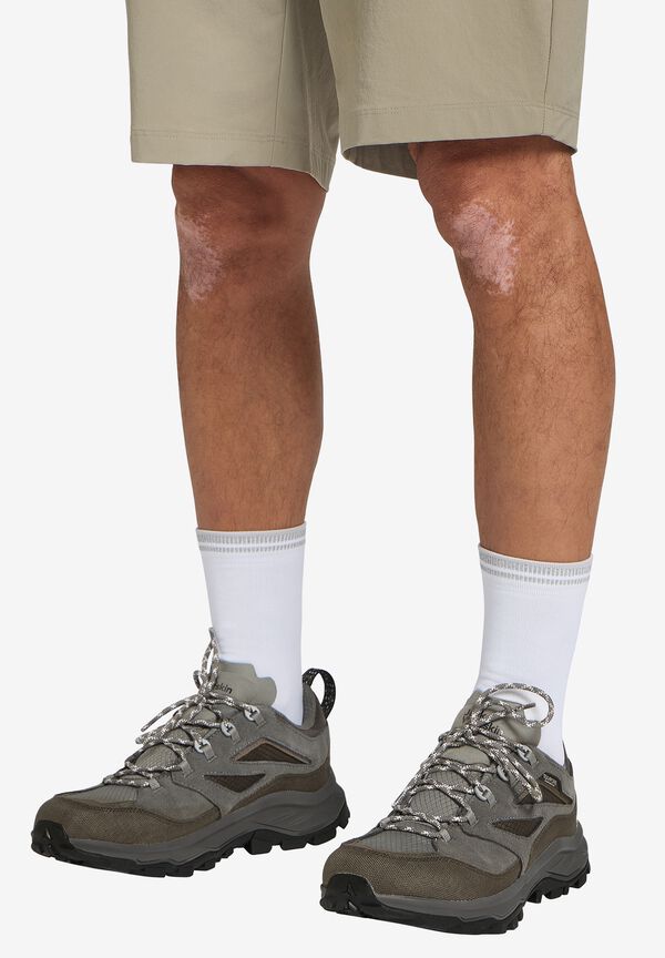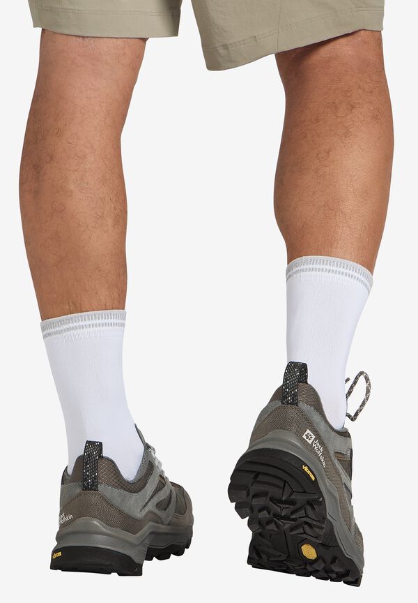Mit dem CYROX TEXAPORE LOW-Wanderschuh für Herren stehen kurzen Wanderungen und auch langen Trekkingtouren nichts mehr im Wege. Das recycelte TEXAPORE ECOSPHERE PRO-Material ist wasserdicht und atmungsaktiv, und der Schaftaufbau aus einem Materialmix sorgt für leichtfüßigen Laufkomfort. Die EVA-Mittelsohle und die ORTHOLITE-Einlegesole dämpfen jeden Schritt sanft ab. Zudem garantiert die VIBRAM-Außensohle hervorragende Trittsicherheit.