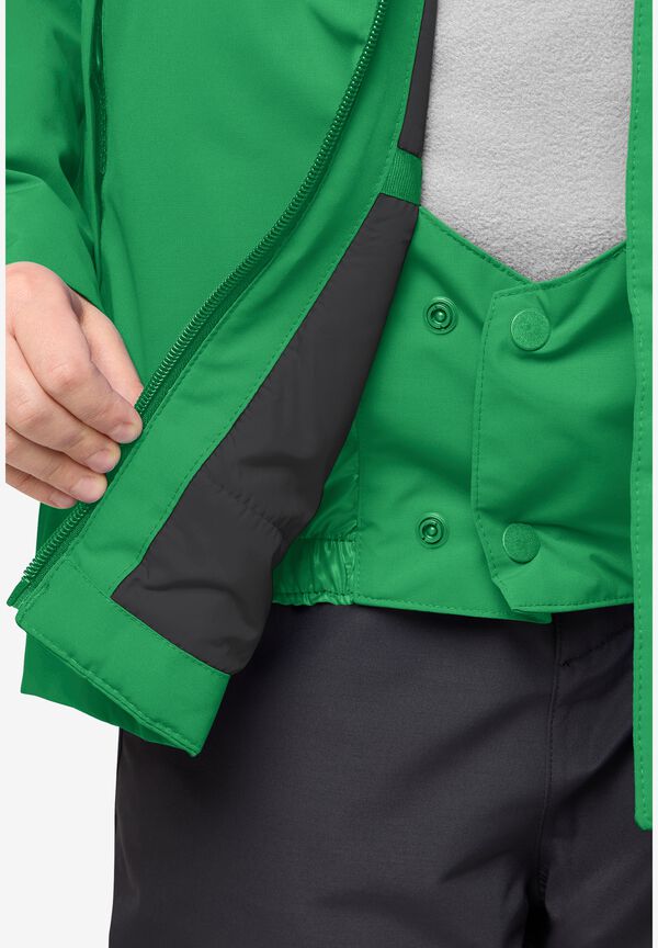An kalten, verschneiten Tagen voller Abenteuer in den Bergen oder der Stadt sind Kinder mit der ACTAMIC 2L INSULATED JACKET gut gegen Wind und Wetter gewappnet und dank der kuschelig warmen Isolierung den ganzen Tag zufrieden. Das TEXAPORE CORE SOFT TASLAN-Gewebe mit recyceltem Innenfutter sorgt für optimalen Schutz bei schlechtem Wetter. Die Isolierung aus TEXATHERM CORE REUSED / RECYCLED (140gm) hält selbst bei Nässe weiterhin schön warm. Eine integrierte Kapuze, elastische, eng abschließende Ärmelbündchen und ein Schneefang sorgen für Rundumschutz beim Spielen – sogar im heftigsten Schneesturm.