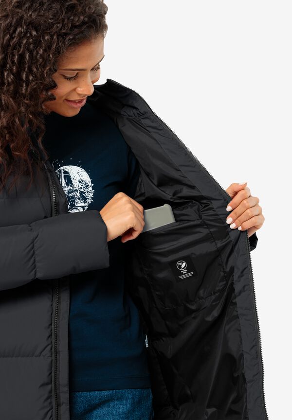 Der schlichte Daunenmantel FROZEN LAKE COAT bietet Wetterschutz und Wärme zugleich. Von außen schützt das atmungsaktive TEXASHIELD Material vor Wind und Nässe und innen wärmt eine hochbauschige Füllung aus zertifizierten Daunen. Für einen figurbetonten Look lässt sich der Mantel durch den integrierten Gürtel einfach nach Belieben taillieren.