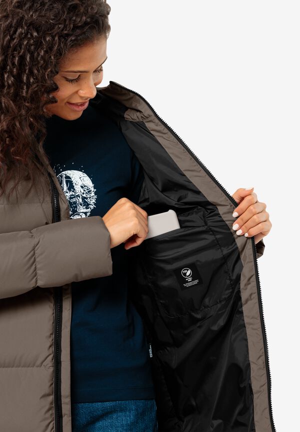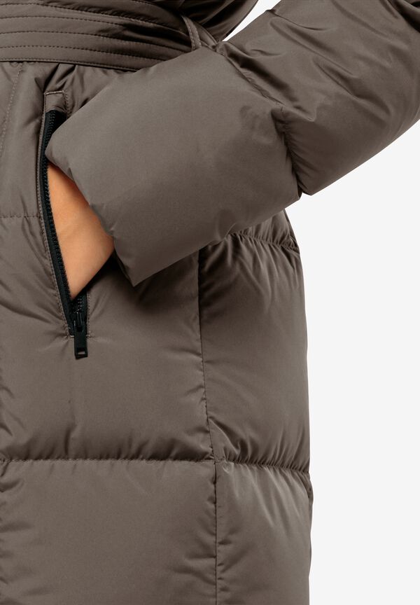 Der schlichte Daunenmantel FROZEN LAKE COAT bietet Wetterschutz und Wärme zugleich. Von außen schützt das atmungsaktive TEXASHIELD Material vor Wind und Nässe und innen wärmt eine hochbauschige Füllung aus zertifizierten Daunen. Für einen figurbetonten Look lässt sich der Mantel durch den integrierten Gürtel einfach nach Belieben taillieren.