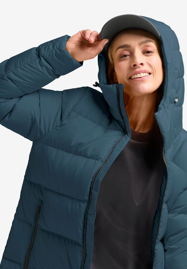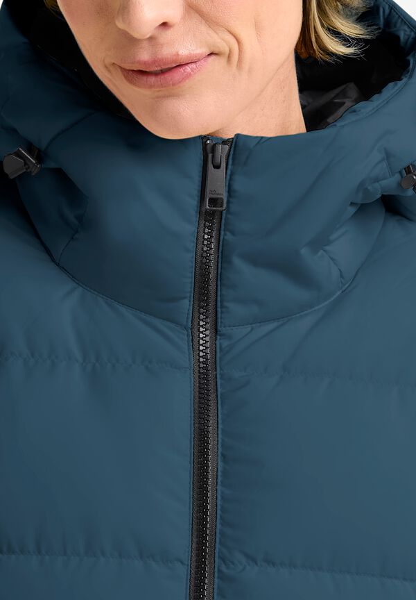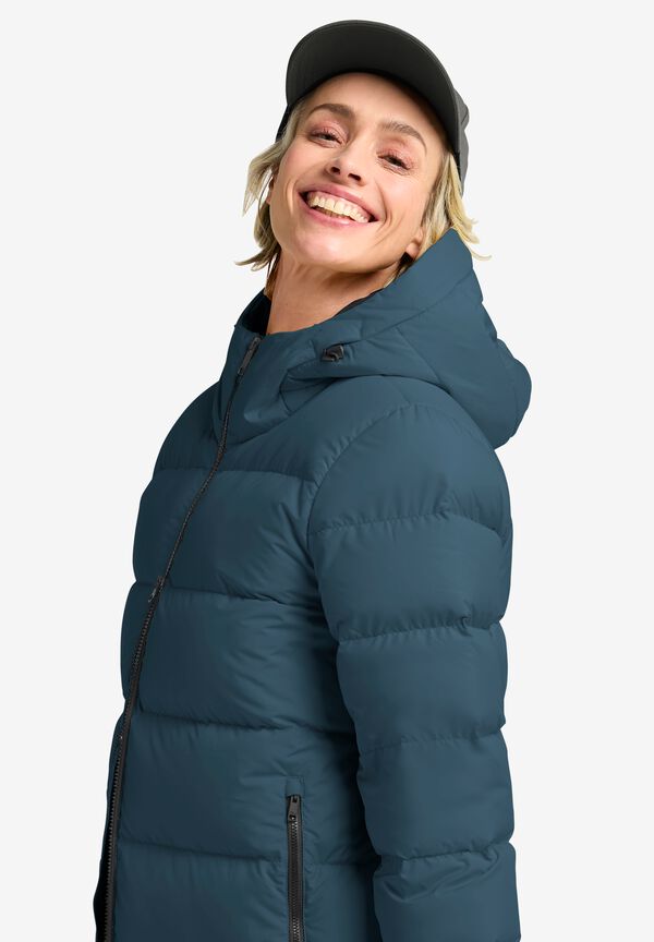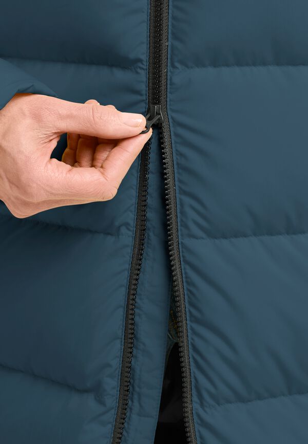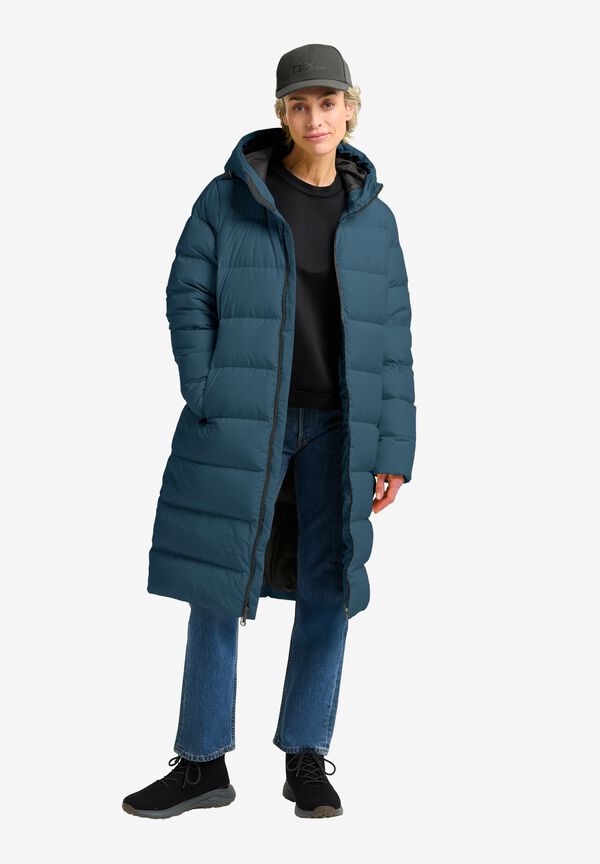 Für eine Extraportion Gemütlichkeit im Winter sorgt der moderne Daunenmantel FROZEN PALACE COAT. Durch die Füllung aus zertifizierten Daunen liefert der lange Mantel die ersehnte Wärme für die kalte Jahreszeit. Das atmungsaktive TEXASHIELD Außenmaterial ist zudem winddicht und besonders wasserabweisend. Abgerundet wird der hohe Tragekomfort durch die individuell anpassbare Kapuze und zusätzliche Innenbündchen an den Ärmeln.