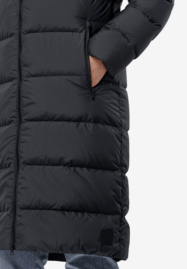 Für eine Extraportion Gemütlichkeit im Winter sorgt der moderne Daunenmantel FROZEN PALACE COAT. Durch die Füllung aus zertifizierten Daunen liefert der lange Mantel die ersehnte Wärme für die kalte Jahreszeit. Das atmungsaktive TEXASHIELD Außenmaterial ist zudem winddicht und besonders wasserabweisend. Abgerundet wird der hohe Tragekomfort durch die individuell anpassbare Kapuze und zusätzliche Innenbündchen an den Ärmeln.