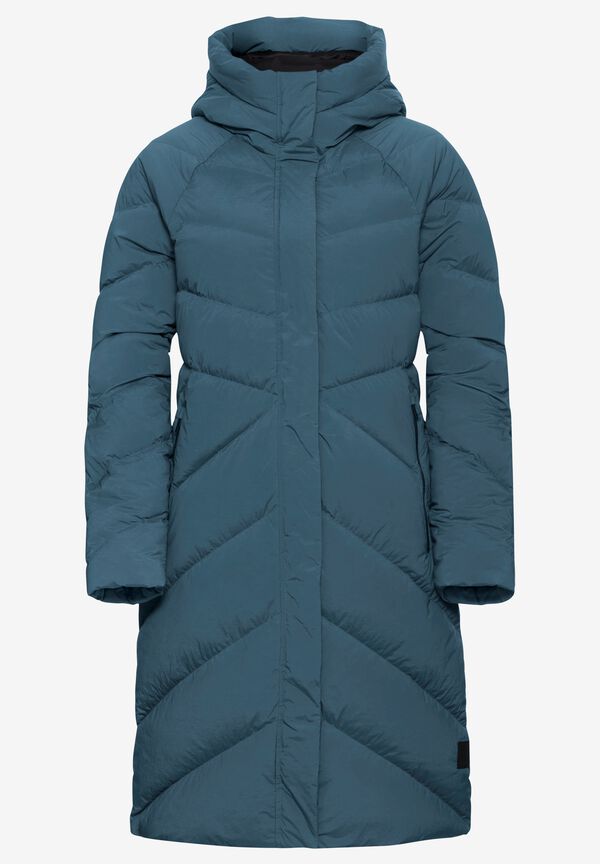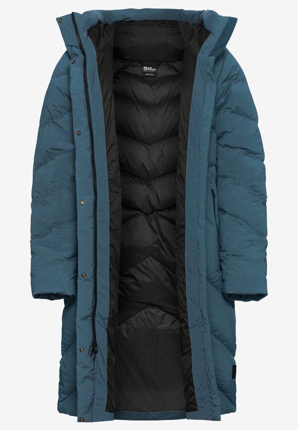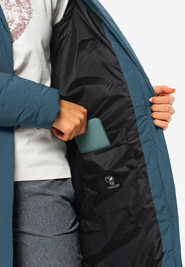 Mit dem modernen Steppmuster betont der MARIENPLATZ COAT seinen leicht taillierten Schnitt und schmeichelt der Figur. Der feminine Wintermantel spendet durch die hochbauschige Füllung aus zertifizierten Daunen viel Wärme und bewahrt diese am Körper, sowohl durch die zusätzlichen Innenbündchen an den Ärmeln, als auch den hohen Kragen mit anschließender Kapuze. Von außen schützt das atmungsaktive TEXASHIELD Material vor Kälte, es ist winddicht und wasserabweisend und gewährleistet durch seinen Stretch-Anteil ein besonders komfortables Tragegefühl.