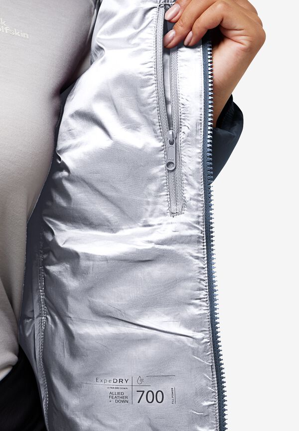 Die NEBELHORN DOWN HOODY ist eine angenehm warme Daunenjacke aus recyceltem Material und mit 700er ALLIED FEATHER® Daunenfüllung, deren Ursprung du anhand von TrackMyDown ermitteln kannst. Sie bietet kuschelige Wärme für winterliche Bedingungen im Schnee und zusätzlich ein TEXASHIELD PRO RIPSTOP Obermaterial, das Wind und leichten Niederschlag abhält. Ein verstellbarer Saum und eine verstellbare Kapuze sorgen dafür, dass die Kälte draußen bleibt und die 2 Eingrifftaschen, 2 Innentaschen und eine Netzinnentasche bieten reichlich Stauraum für deine wichtigsten Dinge und sind dort gleich griffbereit.