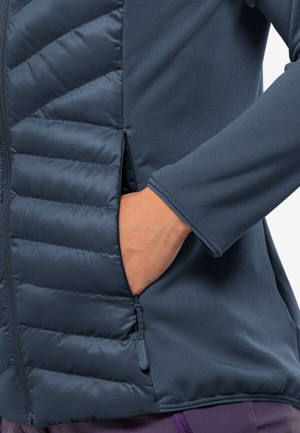 Passe dich mit der stylischen ROUTEBURN PRO HYBRID-Jacke für Damen den wechselnden Jahreszeiten an. Das atmungsaktive TEXASHIELD PRO RIPSTOP 20D-Gewebe ist wind- und wasserabweisend für ganztägigen Tragekomfort, während die schnell trocknende TEXATHERM-Füllung für Wärmeisolierung sorgt. In den Hüfttaschen kannst du Kleinteile verstauen und deine Hände warmhalten.