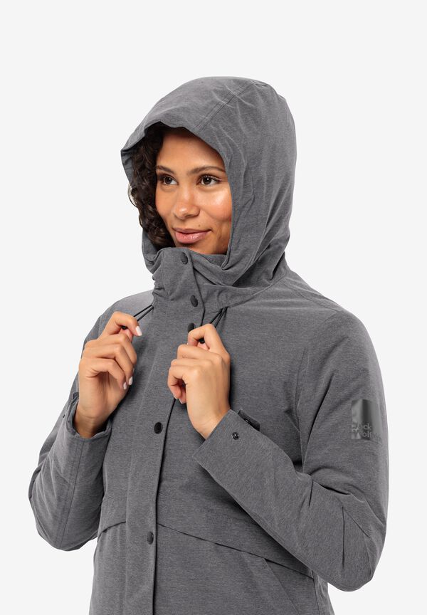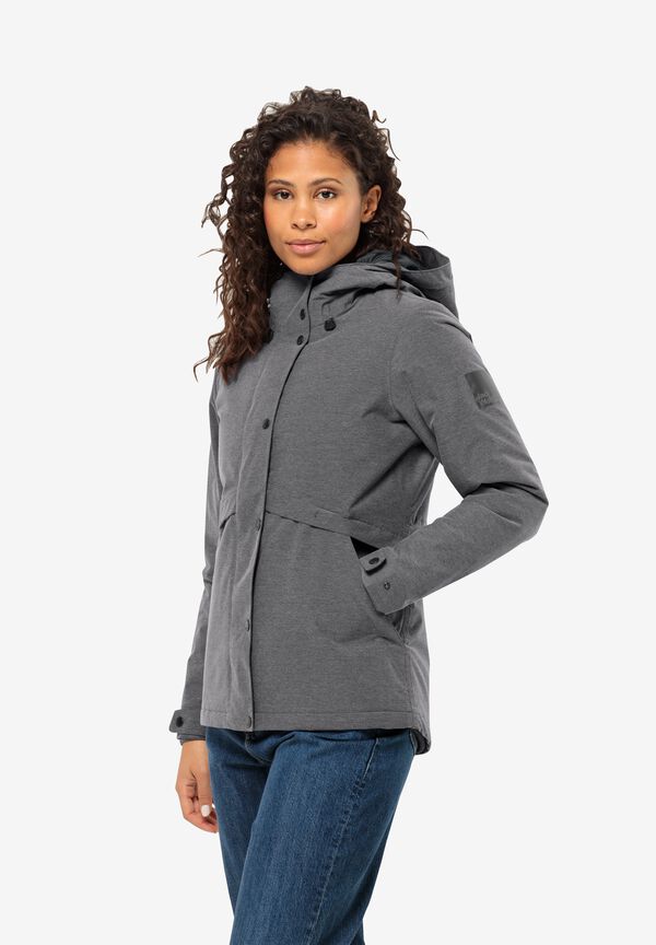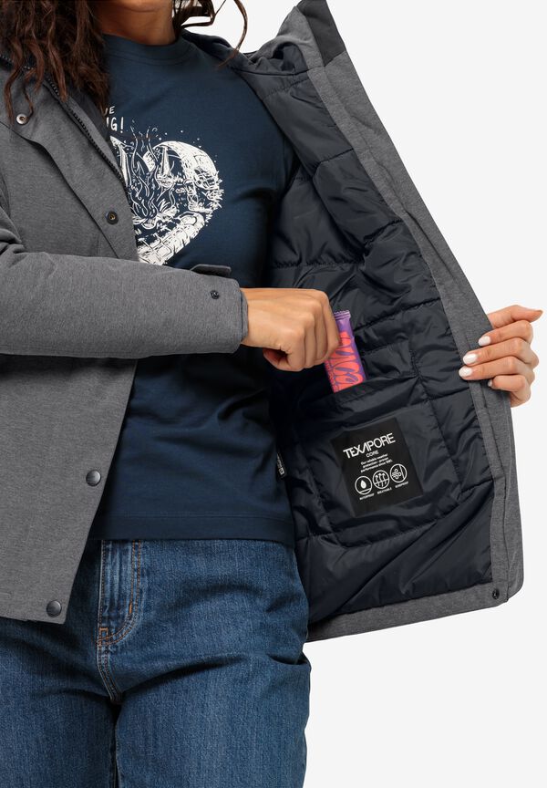 Eine dezente Melange-Optik verleiht der SNOWY PARK Jacke ihren modernen Look. Durch das atmungsaktive und zugleich wetterfeste TEXAPORE Außenmaterial hält die Winterjacke Wasser und Wind problemlos stand. Im Inneren befindet sich eine TEXATHERM Füllung aus recycelten Kunstfasern, die angenehm wärmt und besonders nachhaltig ist. Für noch mehr Komfort lassen sich die Taillenweite, ebenso wie die Ärmelbündchen und das Gesichtsfeld der Kapuze nach Bedarf anpassen.