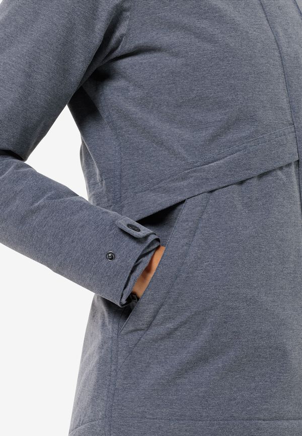 Eine dezente Melange-Optik verleiht der SNOWY PARK Jacke ihren modernen Look. Durch das atmungsaktive und zugleich wetterfeste TEXAPORE Außenmaterial hält die Winterjacke Wasser und Wind problemlos stand. Im Inneren befindet sich eine TEXATHERM Füllung aus recycelten Kunstfasern, die angenehm wärmt und besonders nachhaltig ist. Für noch mehr Komfort lassen sich die Taillenweite, ebenso wie die Ärmelbündchen und das Gesichtsfeld der Kapuze nach Bedarf anpassen.