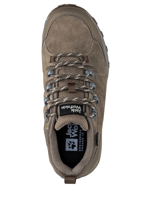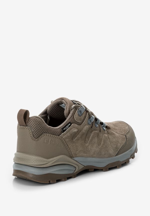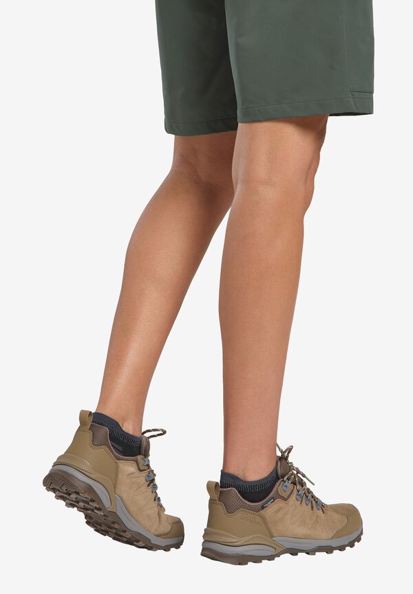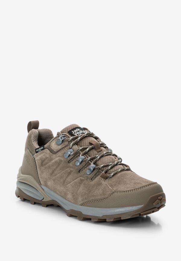Der REFUGIO TEXAPORE LOW für Damen ist ein klassischer Wanderschuh. Dieser aus Veloursleder, Textil und TEXAPORE CORE-Gewebe gefertigte Schuh bietet mehr Halt, Widerstandsfähigkeit und vielseitige Einsatzmöglichkeiten. Die sehr gut dämpfende EVA-Mittelsohle und die Gummisohle mit ihren funktionellen Eigenschaften sorgen für Laufkomfort, während die Schnürung mit Metallösen einen guten Sitz garantiert.