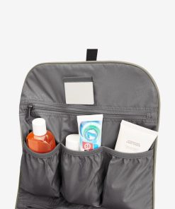 Mit dem geräumigen KONYA WASCHSALON kannst du deine tägliche Körperpflege auch problemlos unterwegs erledigen. Das recycelte ARMATECH PLUS 600D-Gewebe ist äußerst robust und langlebig. Dank der Inneneinteilung mit mehreren Fächern finden alle Toilettenartikel ihren Platz. Den kleinen Spiegel kannst du abnehmen, um dich besser zu sehen. Den Beutel kannst du ganz einfach an dem Haken aufhängen.
