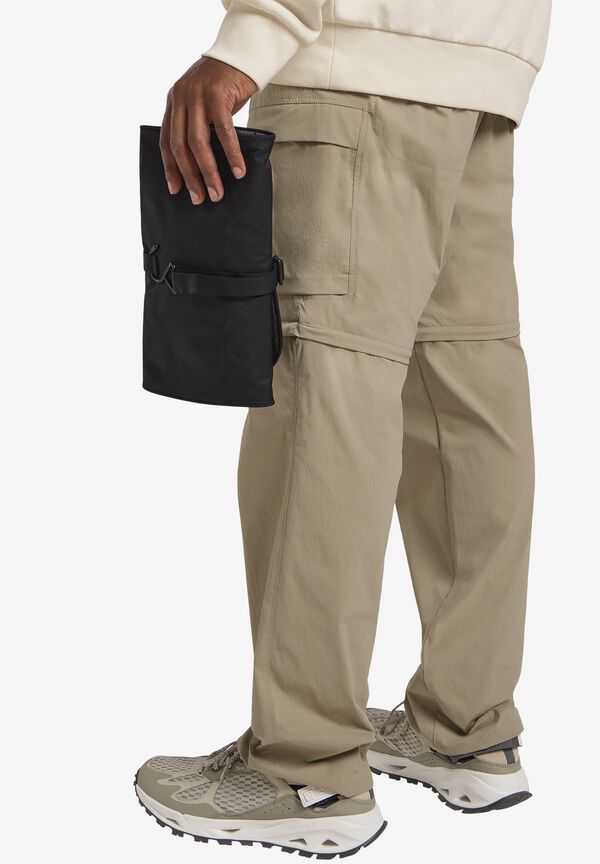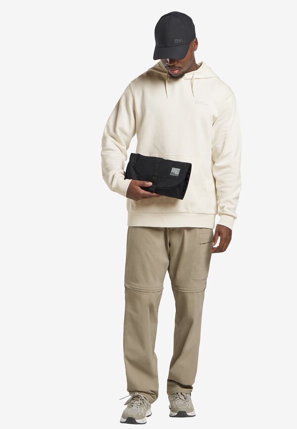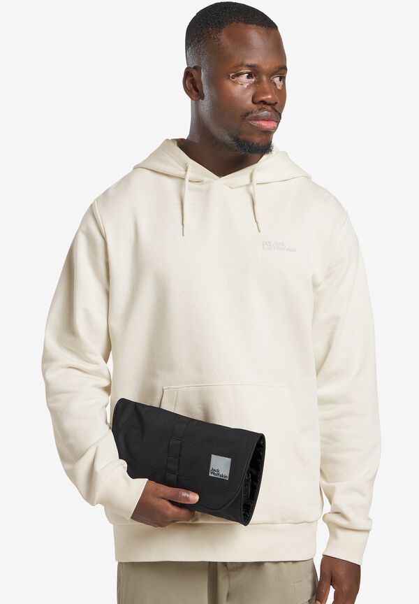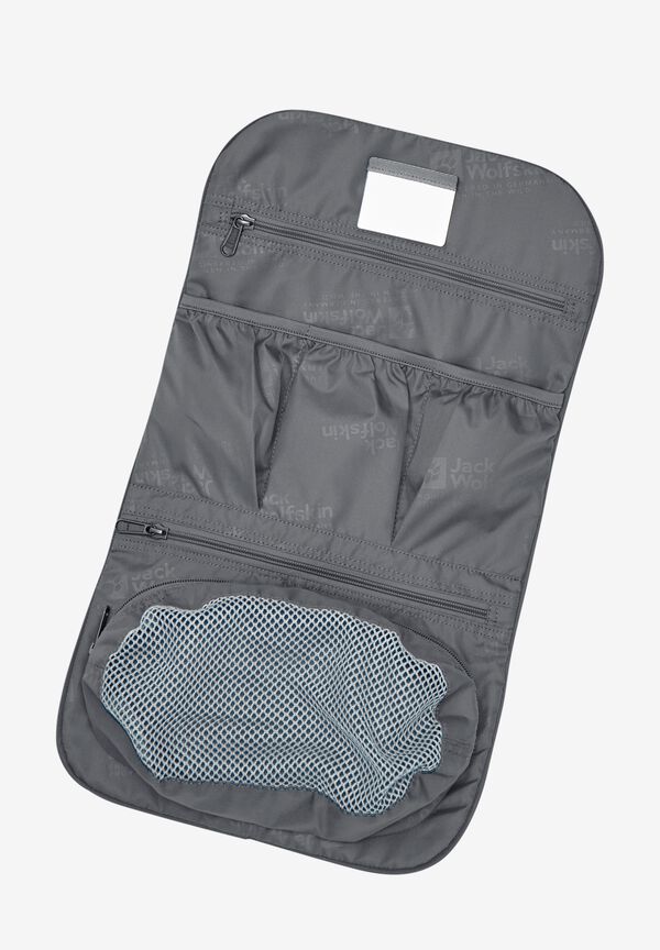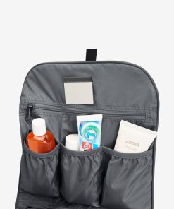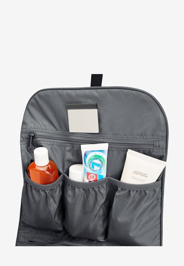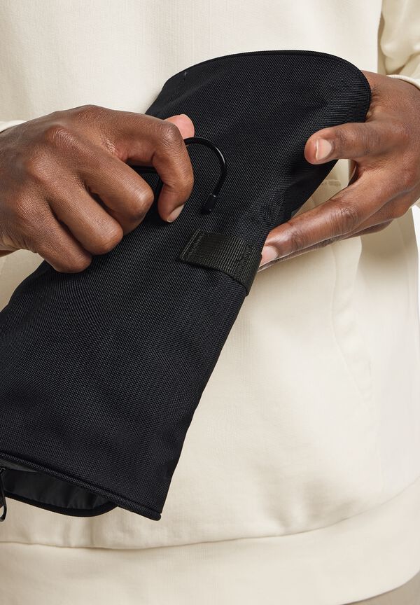 Mit dem geräumigen KONYA WASCHSALON kannst du deine tägliche Körperpflege auch problemlos unterwegs erledigen. Das recycelte ARMATECH PLUS 600D-Gewebe ist äußerst robust und langlebig. Dank der Inneneinteilung mit mehreren Fächern finden alle Toilettenartikel ihren Platz. Den kleinen Spiegel kannst du abnehmen, um dich besser zu sehen. Den Beutel kannst du ganz einfach an dem Haken aufhängen.