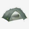 Für den Aufbau der freistehenden Konstruktion brauchst du nur wenige Heringe und Abspannleinen – praktisch, wenn der Boden sehr hart ist. Im Sommer kannst du das Innenzelt auch ohne Außenzelt verwenden.