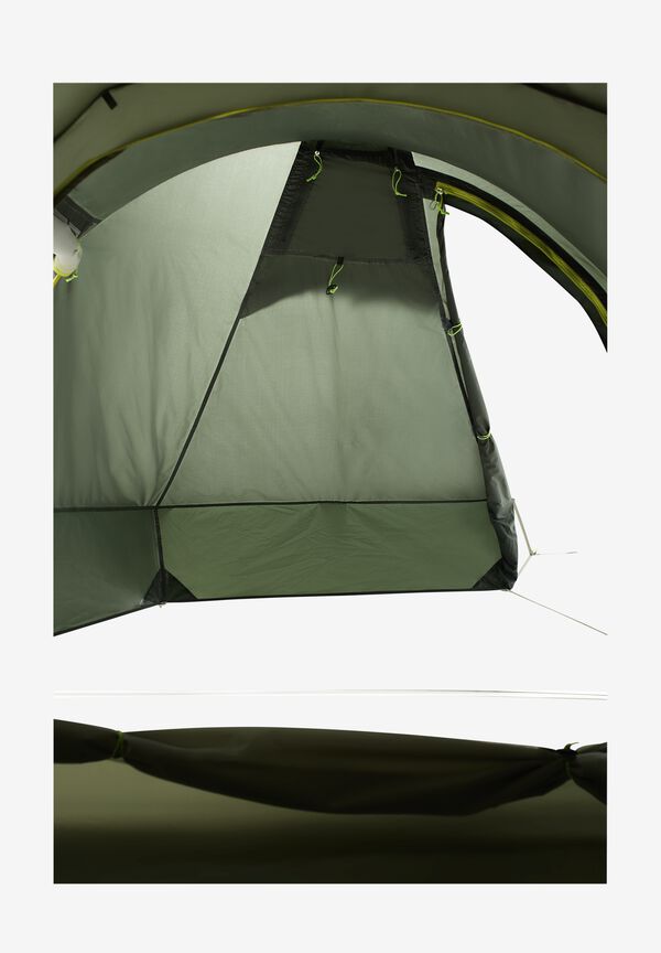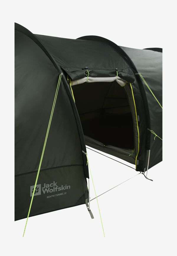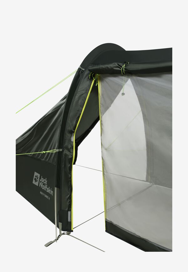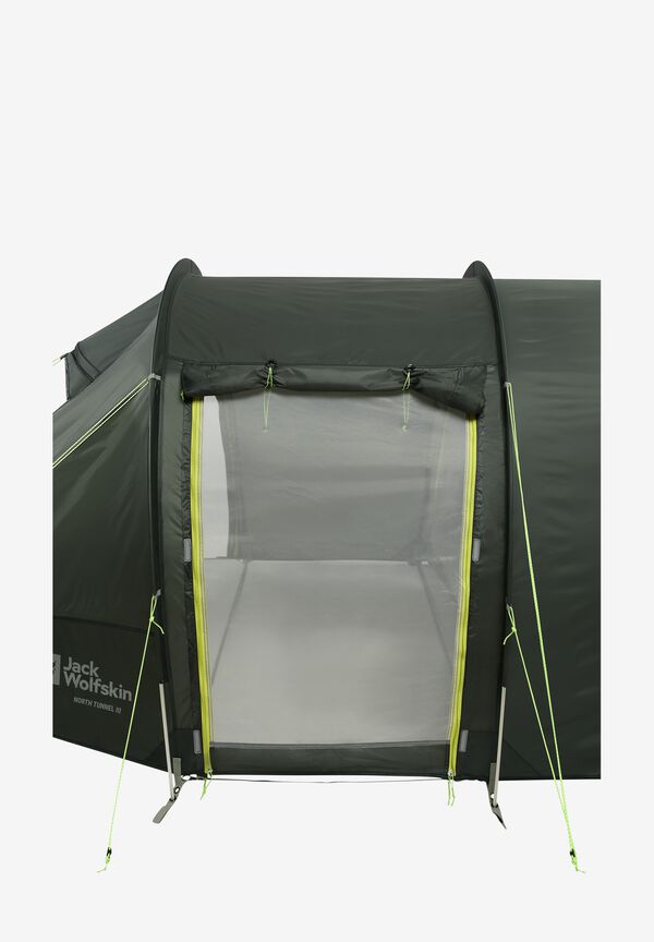 Dank des innovativen Designs des NORTH TUNNEL 3 lässt sich das Gepäck vom Schlafbereich getrennt aufbewahren. So kannst du das Zelt betreten oder verlassen, ohne über einen Rucksack oder andere Ausrüstung zu stolpern. Ein Innenzelt unterteilt den Raum, damit dein Schlafbereich sauber und trocken bleibt und du im abgetrennten Vorraum viel Platz für dein Gepäck hast, wo es sich ordentlich und sicher verstauen lässt. Es eignet sich ideal für kleine Familien oder Gruppen, die im Sommer länger campen möchten.